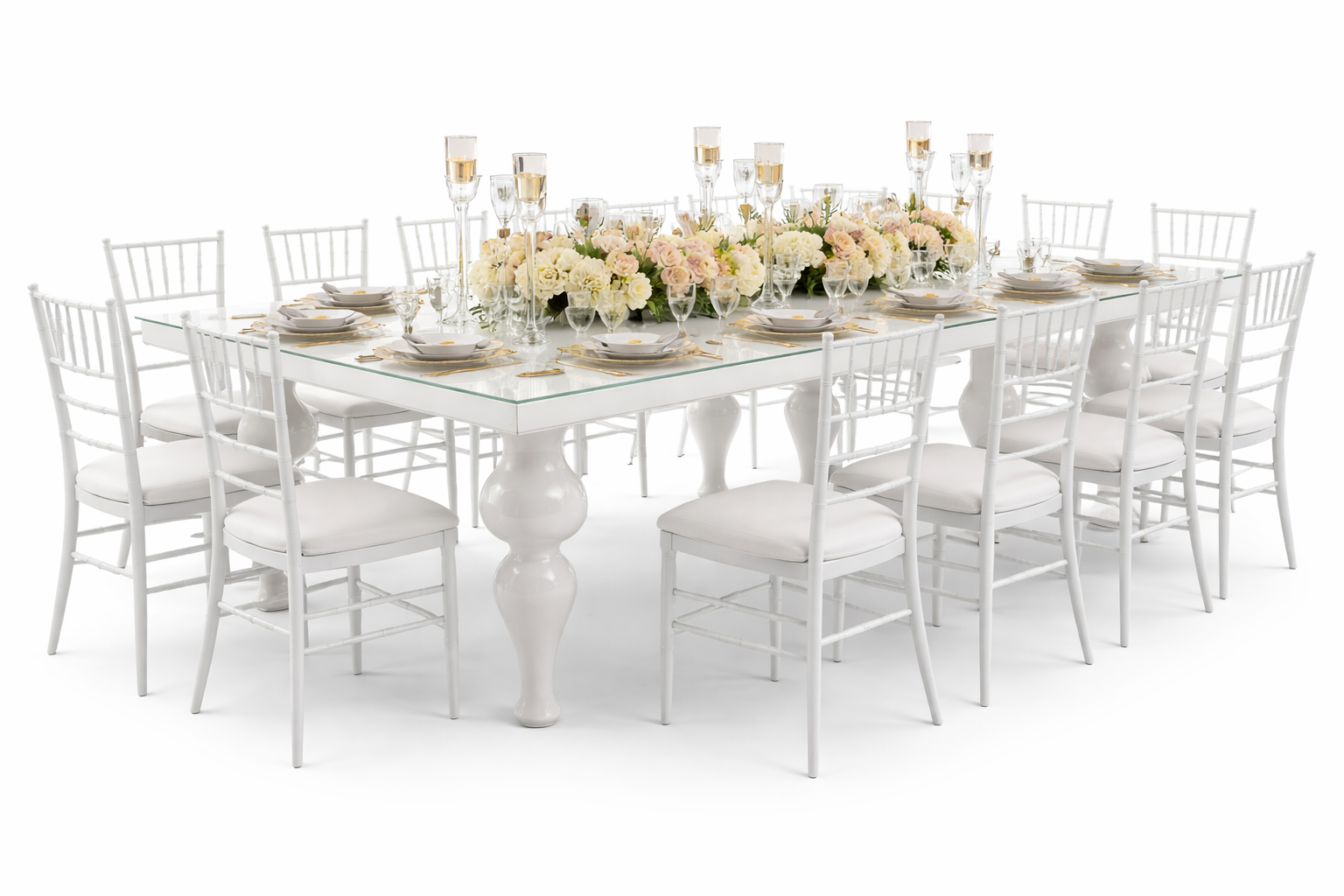 Our statement glass tables are designed to impress—ideal for dining or standout feature areas at your event.